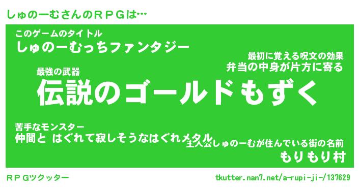 | 男性向けラノベタイトル風あだ名 | 『しゅのーむの憂鬱』 |