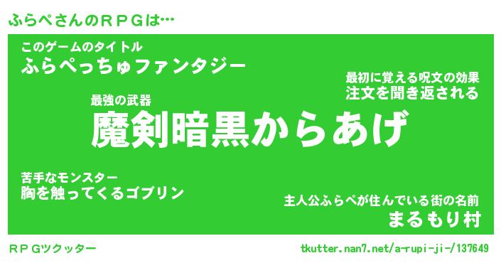 | 男性向けラノベタイトル風あだ名 | 『ふらぺの憂鬱』 |