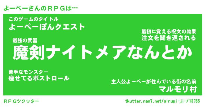 | 男性向けラノベタイトル風あだ名 | 『よーぺーの憂鬱』 |