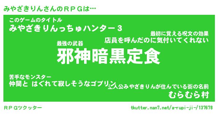 | 男性向けラノベタイトル風あだ名 | 『ミヤザキリンアートオンライン』 |