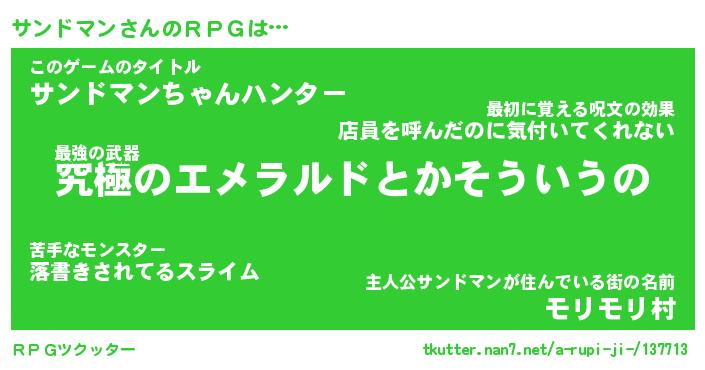 | 男性向けラノベタイトル風あだ名 | 『サンドマンアートオンライン』 |