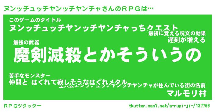| 胡散臭い通販商品みたいなあだ名 | 『必ず成功する霊験あらたかなお札…その名も「ヌンッチュッチヤンッチヤンチャ」』 |