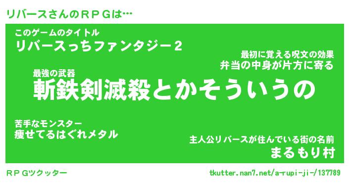 | ファンタジー風あだ名 | 『リバフェル』『エターナルリバースー』 |