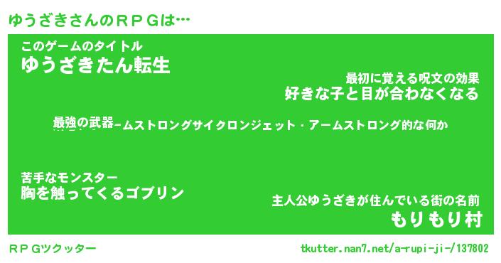 | ファンタジー風あだ名 | 『ユウフェル』『エターナルユウザキー』 |
