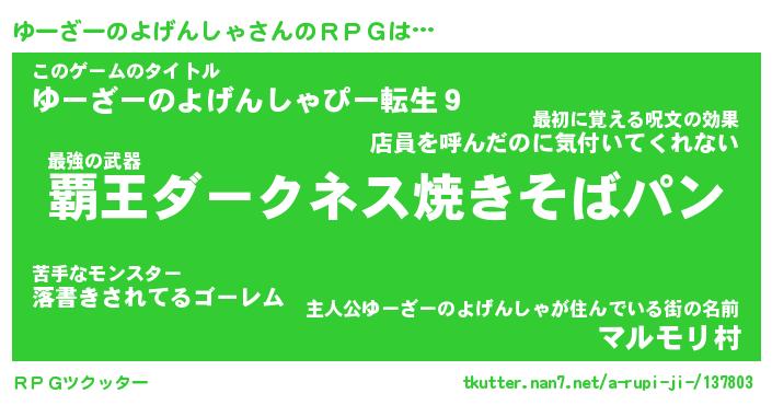 | ツイッター | ゆーざーのよげんしゃさんのツイッターID『namakemono_idle』 |