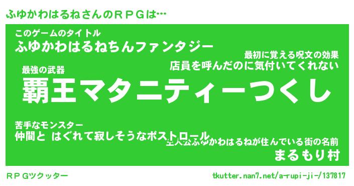 | 伝説のあだ名 | 『封印されしスナイパーふゆかわはるね』 |