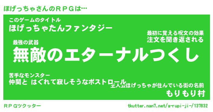 | ファンタジー風あだ名 | 『ホゲフェル』『エターナルホゲッチャー』 |