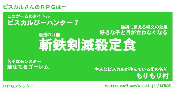 | ヒーロー風カッコイイあだ名 | 『スーパーピスカル』『銀牙騎士ピス』 |