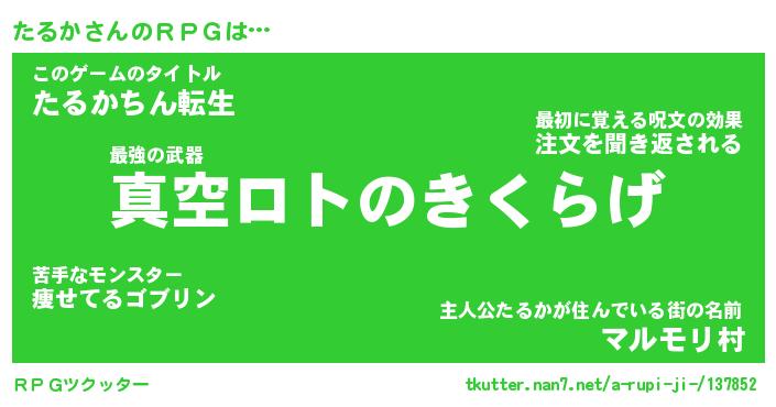 | 男性向けラノベタイトル風あだ名 | 『タルカアートオンライン』 |