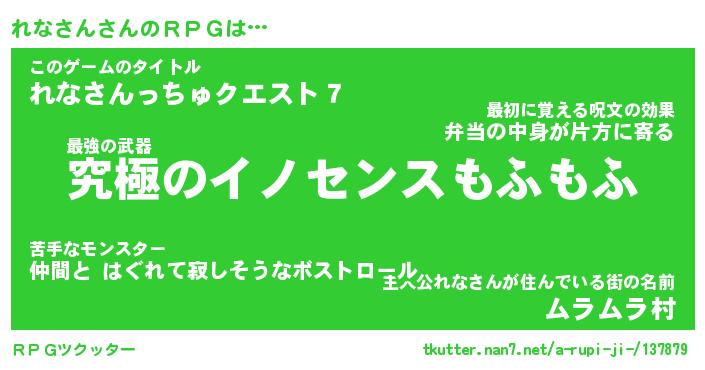 | ファンタジー風あだ名 | 『レナフェル』『エターナルレナサンー』 |