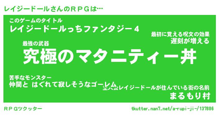 | 料理風あだ名 | 『節約★レイジードールと油揚げの玉子丼』 |