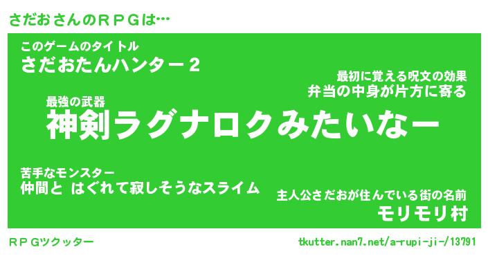 | 女子向けラノベタイトル風あだ名 | 『さだお姫と円卓の騎士』 |