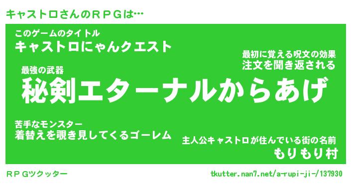 | ファンタジー風あだ名 | 『キャフェル』『エターナルキャストロー』 |