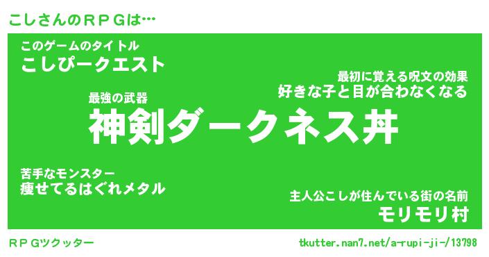 | ファンタジー風あだ名 | 『コシフェル』『エターナルコシー』 |