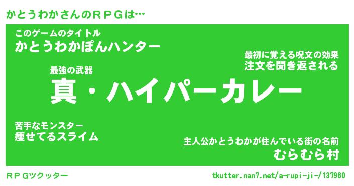 | 伝説のあだ名 | 『封印されし竜騎士かとうわか』 |