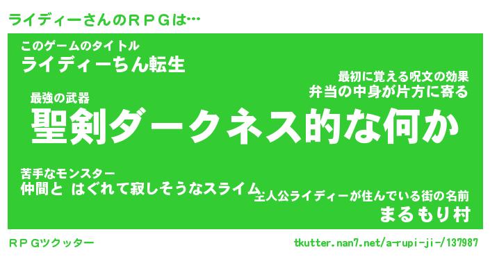 | 胡散臭い通販商品みたいなあだ名 | 『必ず成功する水晶球…その名も「ライディー」』 |