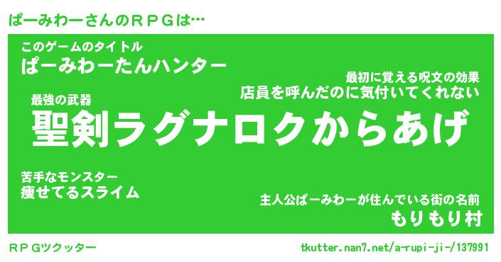 | 男性向けラノベタイトル風あだ名 | 『ぱーみわーの憂鬱』 |