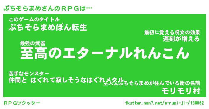 | ヒーロー風カッコイイあだ名 | 『スーパープチソラマメ』『天弓騎士プチ』 |
