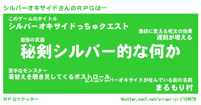 | 男性向けラノベタイトル風あだ名 | 『シルバーオキサイドの憂鬱』 |
