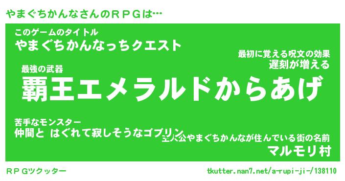 | 伝説のあだ名 | 『封印されしスナイパーやまぐちかんな』 |