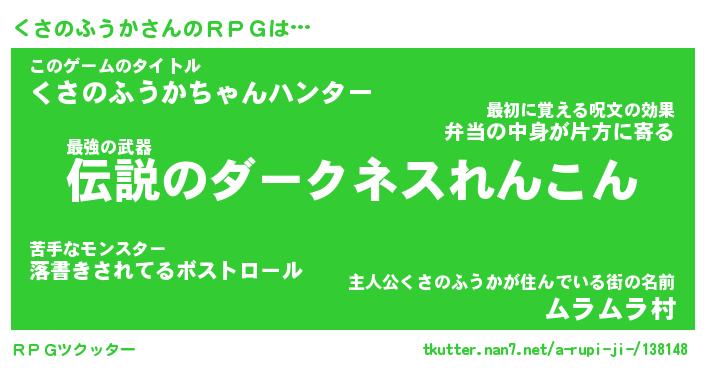 | 女子向けラノベタイトル風あだ名 | 『くさのふうか姫と円卓の騎士』 |