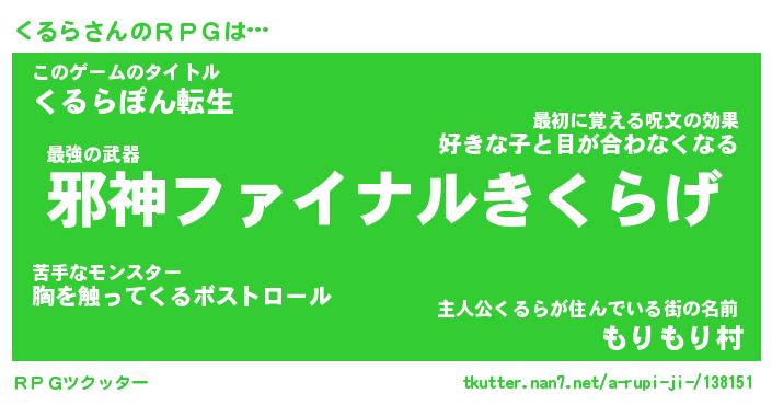 | ファンタジー風あだ名 | 『クルフェル』『エターナルクルラー』 |