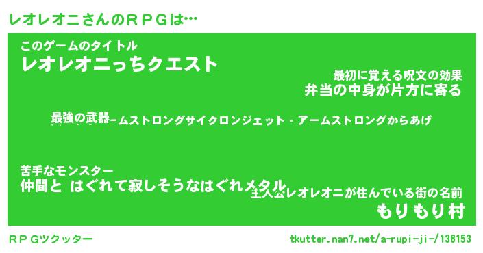 | ファンタジー風あだ名 | 『レオフェル』『エターナルレオレオニー』 |