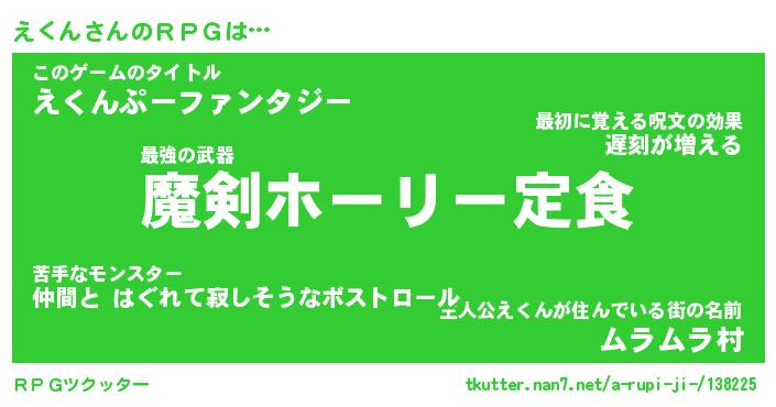 | 伝説のあだ名 | 『伝説の傭兵えくん』『最強の忍者えくん』 |