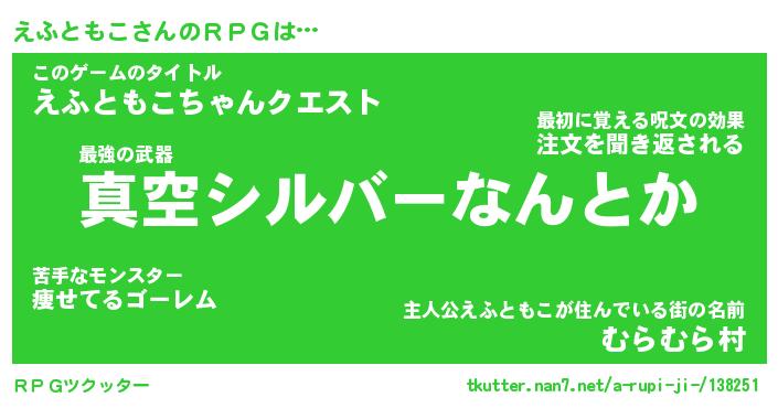 | 伝説のあだ名 | 『封印されし傭兵えふともこ』 |