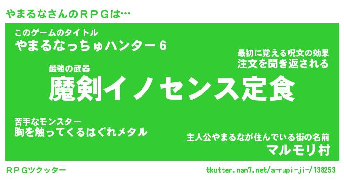 | 伝説のあだ名 | 『伝説のスナイパーやまるな』 |