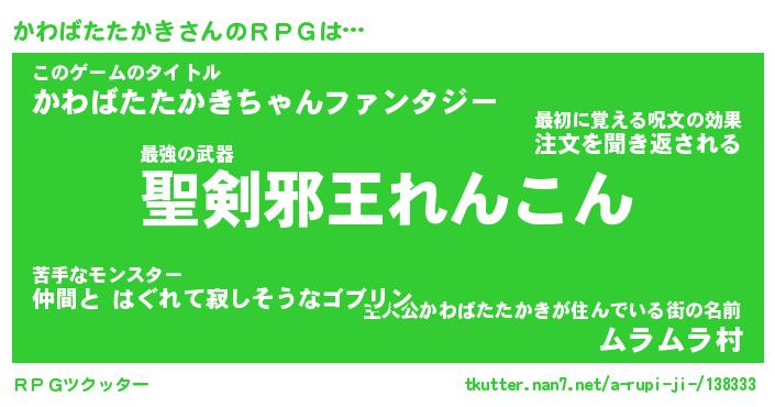 | 胡散臭い通販商品みたいなあだ名 | 『必ず成功する水晶球…その名も「かわばたたかき」』 |