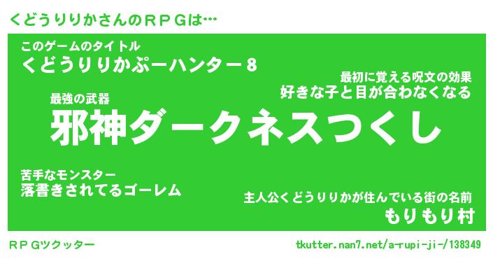 | 男性向けラノベタイトル風あだ名 | 『クドウリリカアートオンライン』 |