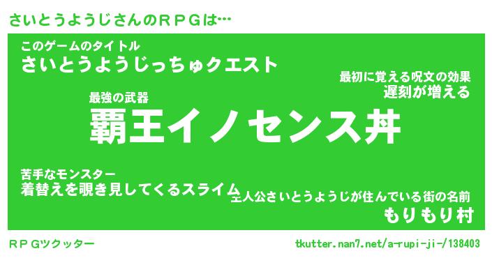 | 男性向けラノベタイトル風あだ名 | 『サイトウヨウジアートオンライン』 |