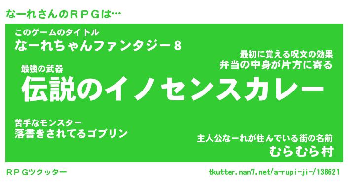 | 男性向けラノベタイトル風あだ名 | 『なーれの憂鬱』 |