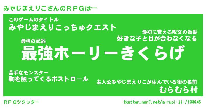| 男性向けラノベタイトル風あだ名 | 『ミヤジマエリコアートオンライン』 |