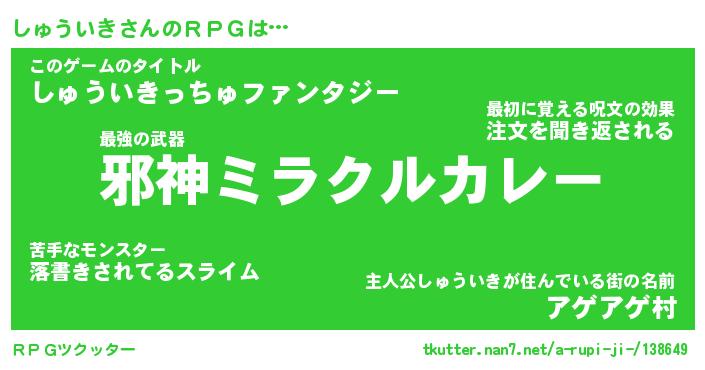 | ヒーロー風カッコイイあだ名 | 『スーパーシュウイキ』『幻影騎士シュ』 |