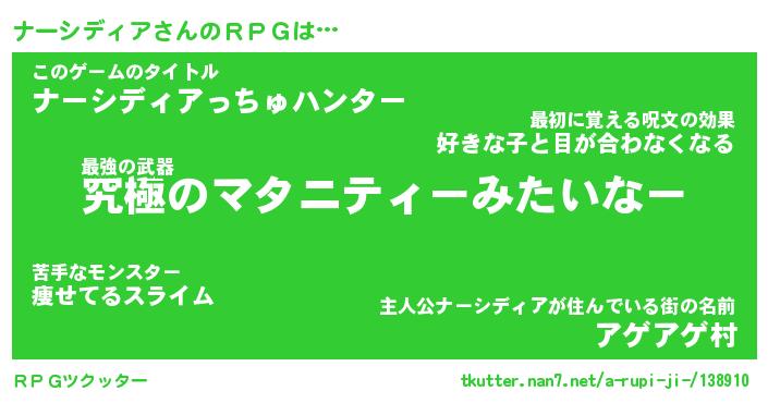 | ヒーロー風カッコイイあだ名 | 『スーパーナーシディア』『魔戒騎士ナー』 |