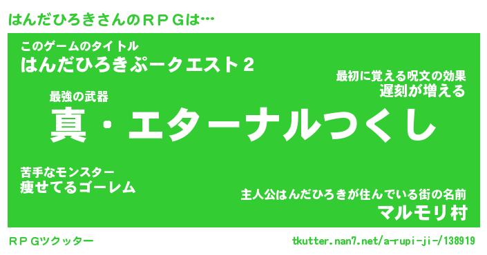 | 伝説のあだ名 | 『封印されし傭兵はんだひろき』 |