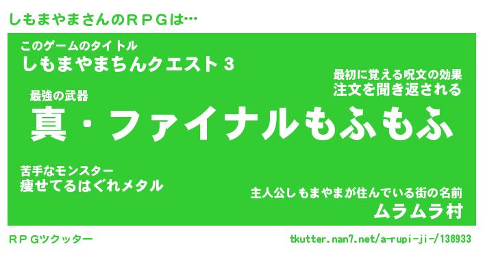 | ファンタジー風あだ名 | 『シモフェル』『エターナルシモマヤマー』 |