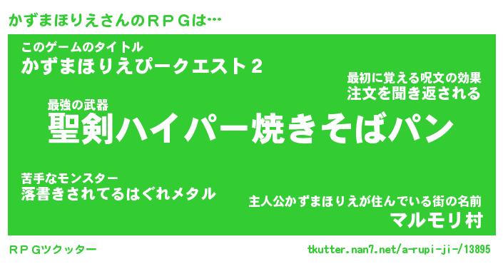 | 伝説のあだ名 | 『伝説の竜騎士かずまほりえ』 |