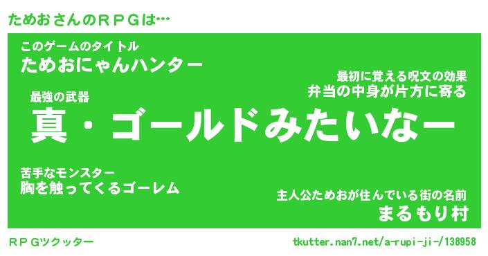 | 伝説のあだ名 | 『封印されし傭兵ためお』 |