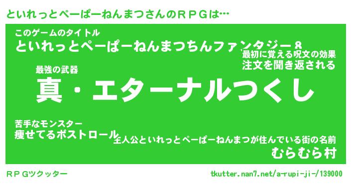 | 肩書あだ名 | 『といれっとぺーぱーねんまつ店長』 |