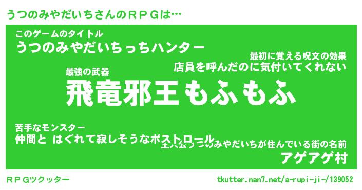 | 男性向けラノベタイトル風あだ名 | 『ウツノミヤダイチアートオンライン』 |
