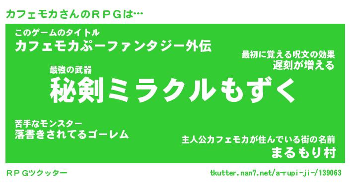 | ファンタジー風あだ名 | 『カフフェル』『エターナルカフェモカー』 |