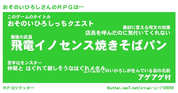 | 胡散臭い通販商品みたいなあだ名 | 『億万長者になれる霊験あらたかなお札…その名も「おそのいひろし」』 |