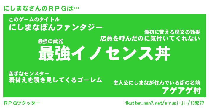 | 男性向けラノベタイトル風あだ名 | 『ニシマナアートオンライン』 |