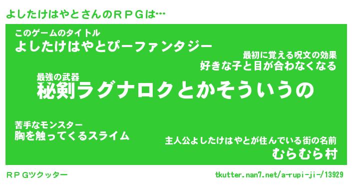 | ポケモン風あだ名 | 『ヨシチュウ』『ヨシタダネ』 |