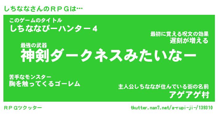 | ヒーロー風カッコイイあだ名 | 『スーパーシチナナ』『銀牙騎士シチ』 |