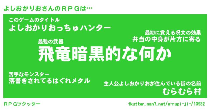| 伝説のあだ名 | 『封印されし傭兵よしおかりお』 |