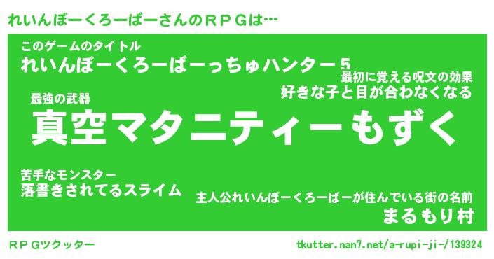 | 伝説のあだ名 | 『封印されしスナイパーれいんぼーくろーばー』 |